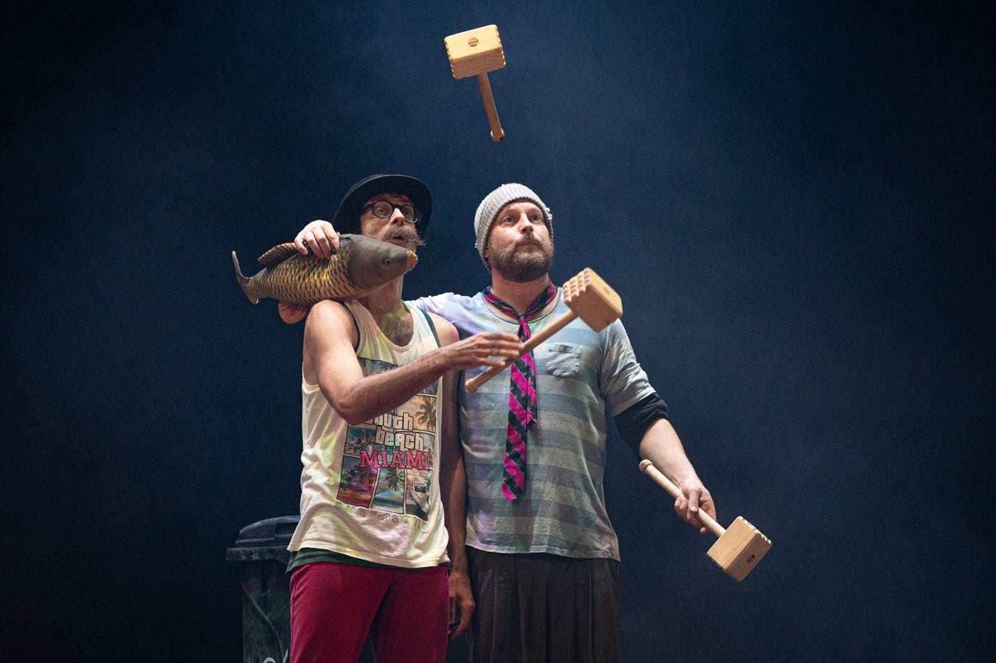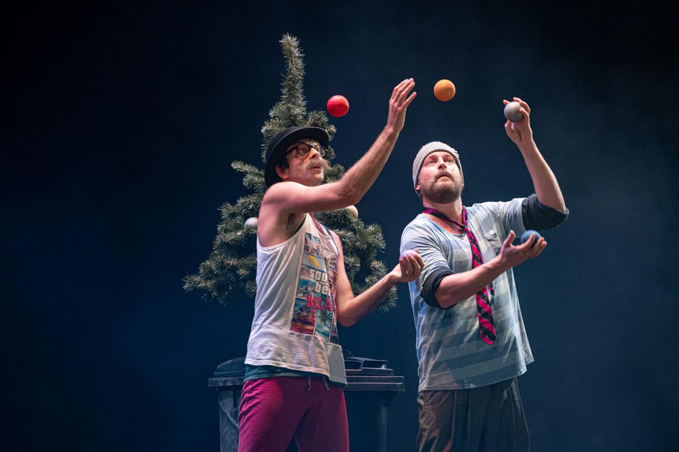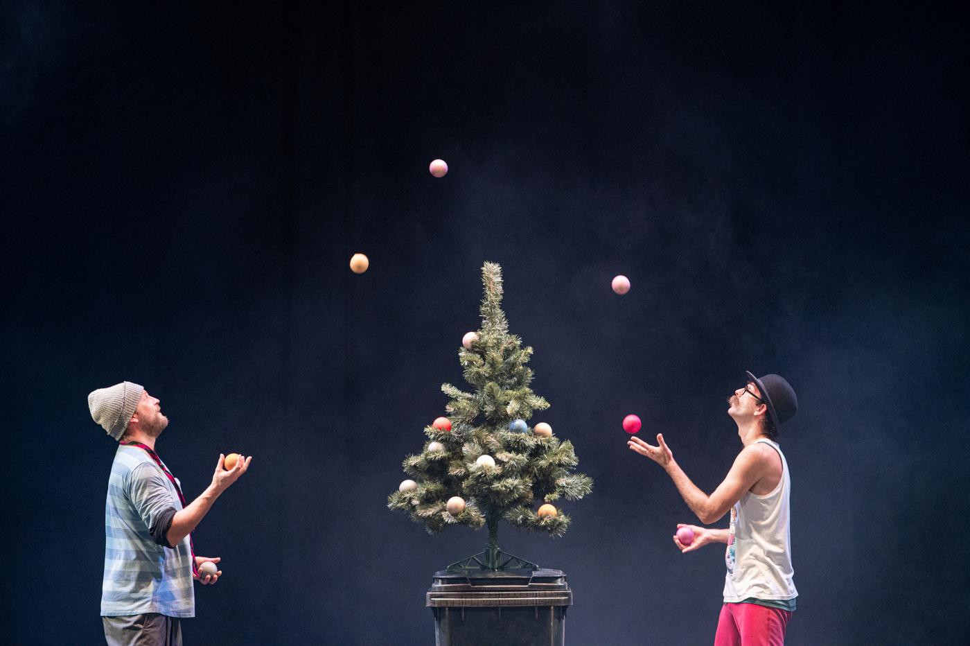 Dva bezdomovci na ulici, dva pastýři na cestě do Betléma, dva Bratři v tricku v nové inscenaci! K tomu vytříbená žonglérská technika, humor a nadsázka, značná dávka absurdity i špetka vánoční nostalgie.